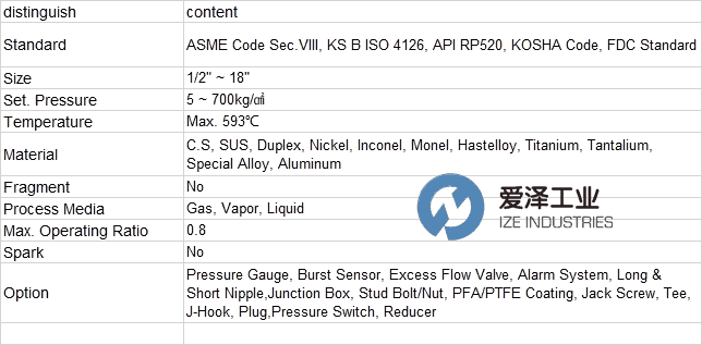 FDC爆破片KSRSFV-1/2 SET技术规格