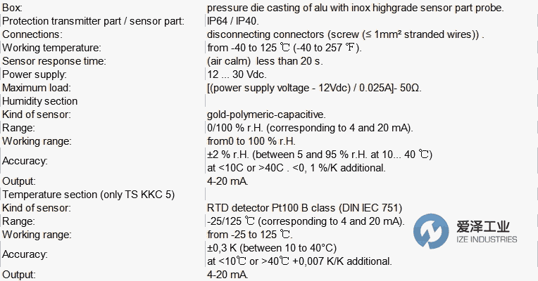 THERMOSYSTEMS温湿度传感器TS KKC系列技术参数