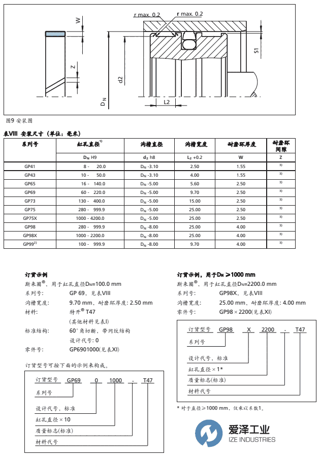 BUSAK+SHAMBAN(B+S)耐磨环GP73产品参数