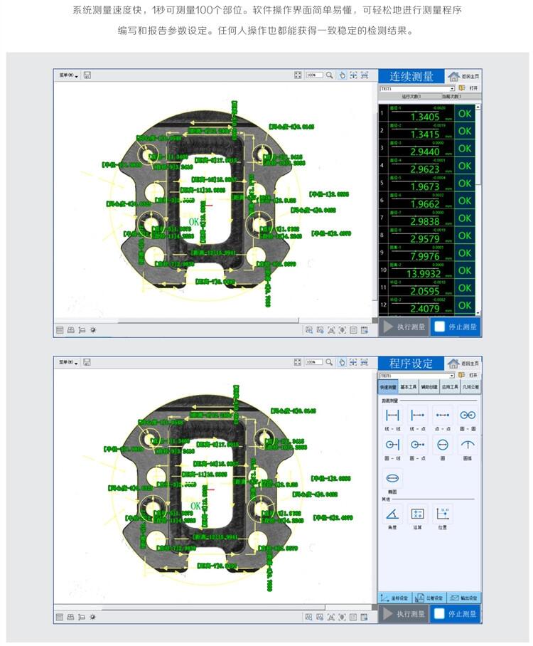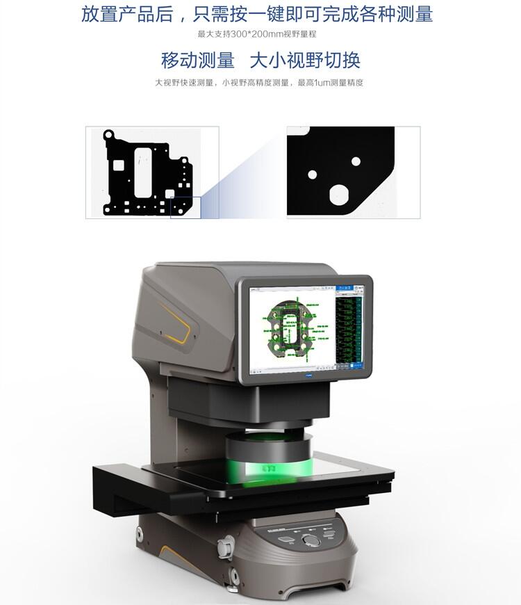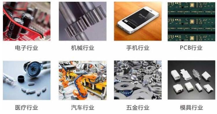 适用于电子、机械加工、五金、塑料加工、汽车等行业,常见的工件包括冲压成型件、注射成型件或激光切割件,非常适合测量距离、半径、角度、弧度等尺寸的检测。
