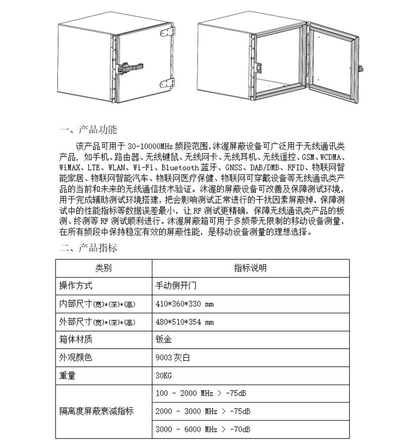 手动侧开门电磁屏蔽箱 路由器信号射频RF电磁屏蔽隔离测试箱