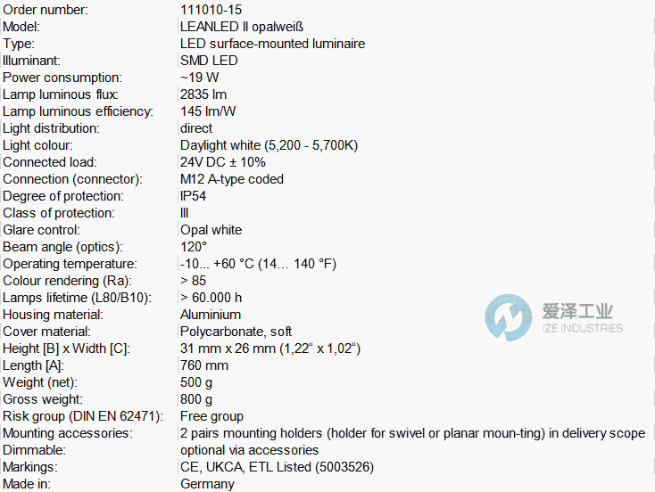 LED2WORK灯管111010-15技术参数及产品介绍