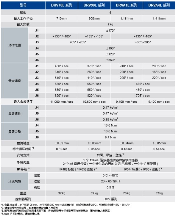 台达 DRV90L7A6313N 垂直多关节工业机器人机械手|中电自动化销售代理 技术规格: