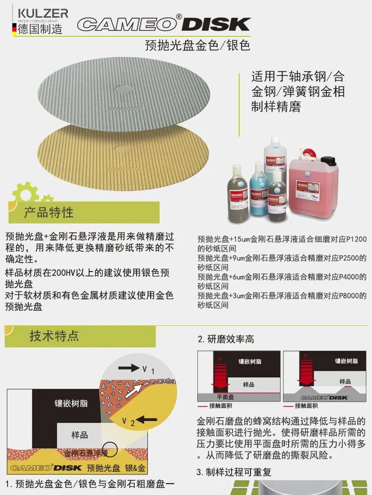 CAMEO DISK PLATINIUM金刚石磨盘铂盘可用于所有常见的自动和半自动研磨抛机。并且,由于金刚石磨盘表面网格很细,CAMEO DISKPLATINIUM金刚石磨盘铂盘也非常适合手动制样。