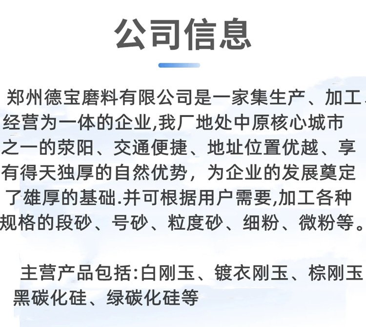 商铺名称:郑州德宝磨料有限公司