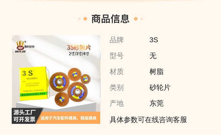 3S砂轮片50/70/100mm金属打磨树脂砂轮 源头厂家 品牌 | 3S | ||