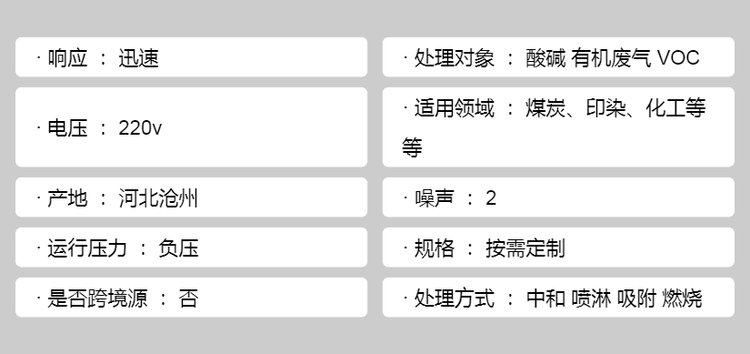 处理方式 | 中和 喷淋 吸附 燃烧 | ||