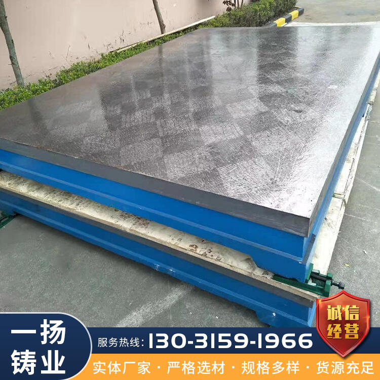 铸铁平板(铸铁平台)按其结构分为筋板式和箱体式,工作面有长方形、正方形和圆形。铸铁平板优点:长时间使用磨损后,可以通过调试、或刮研恢复其精度铸铁平板材质采用高强度铸铁HT200-300,工作面硬度为HB170-240,规格:100*100-3000*6000,精度是按标准计量检定规程执行,分别为00、0、1、2、3五个等级。铸铁平板精度稳定。河北邯郸市T型槽平台 铸铁工作台 摩擦焊接工作台精度等级标准