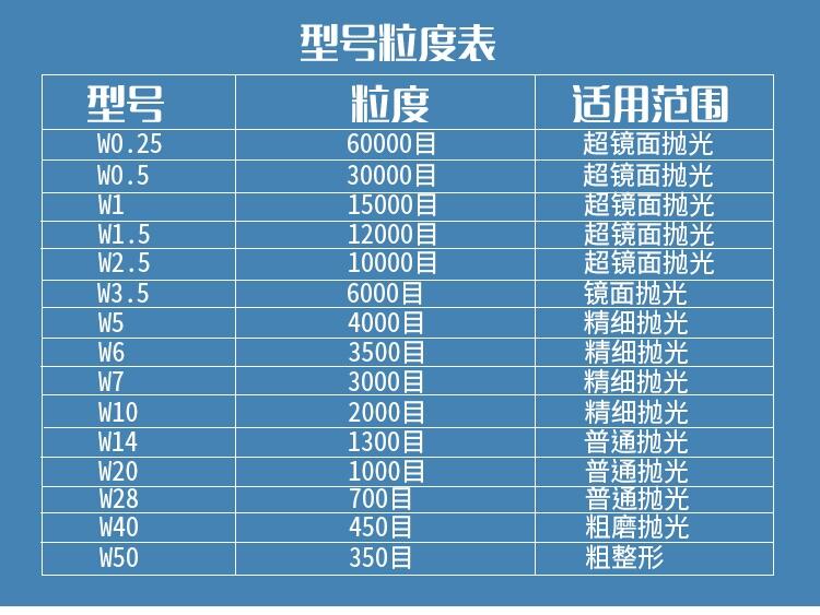 金刚石研磨液选用优质金刚石微粉做磨料,选取优质的辅材保持磨削效率的协同效应,配以独特的研磨介质,融物理作用和化学作用于一体,使金刚石微粉处于悬浮状态。抛光介质使用充分,研磨效果好,不易产生划痕,硬度较高,刃口尖锐锋利,对软硬材料都有良好的研磨作用。
