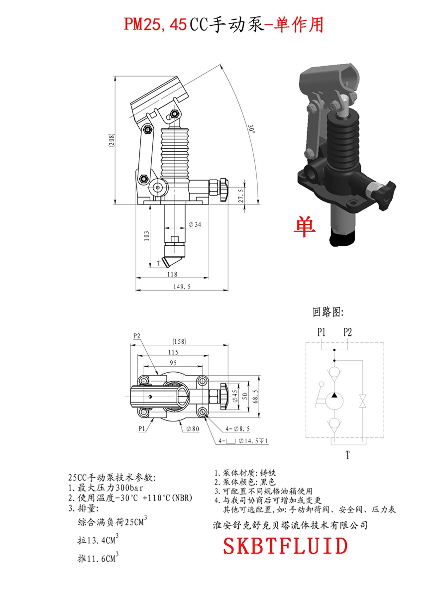 PM25CC-双作用船舶应急液压手动泵--带压力表