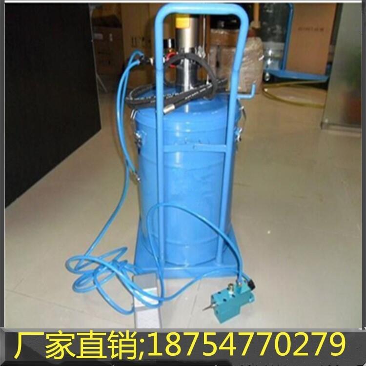 流动式黄油加注机, 此机装在小车上,可将10-20公斤油桶整个放入桶内、也可将散装油倒如桶内。 加注机配有1个60:1的强力泵、4米喉、可旋转高压黄油加注枪。该装置以气源为动力,由气动元件控制,性能稳定、快速注脂、适用范围广泛等特点。