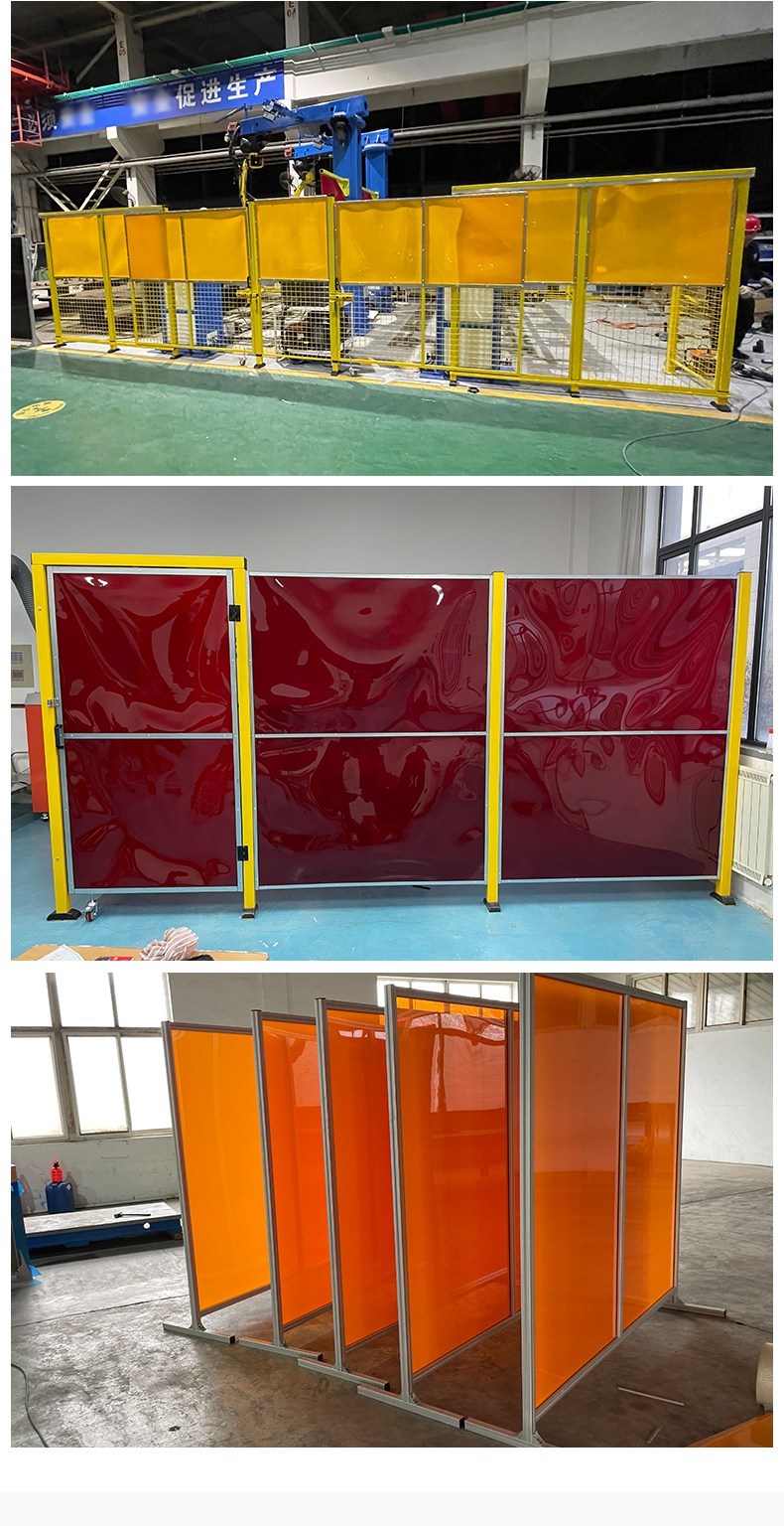 红色PVC板护栏可移动焊接防护屏电焊阻燃屏防弧光隔断屏风铝型材