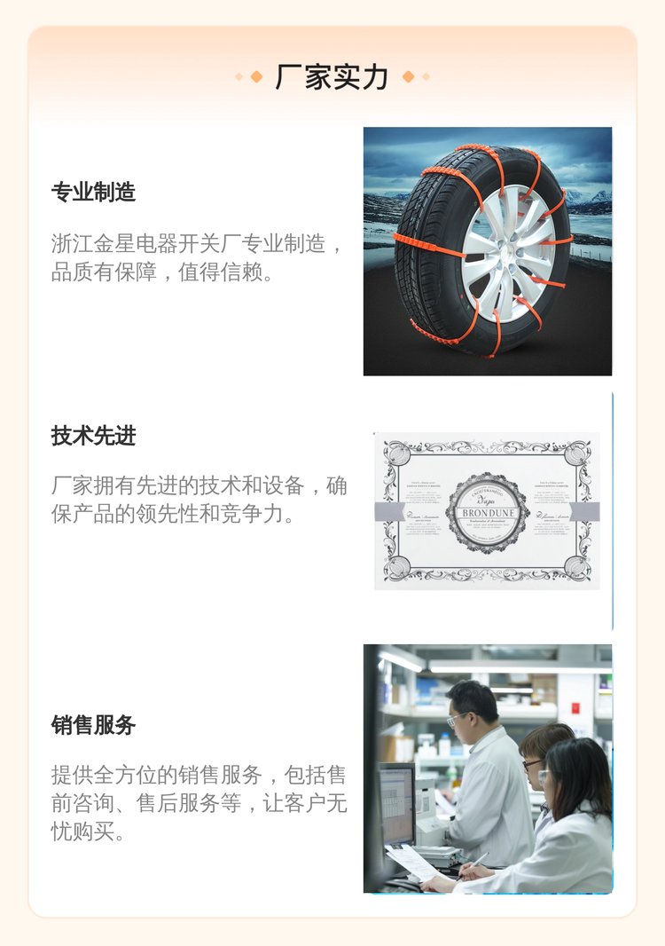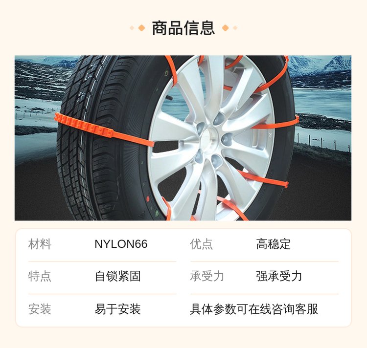 浙江金星TS302004334系列汽车轮胎防滑扎带结合中央供料系统、全自动机械手、电磁加热等国内先进的配线器材生产设备,选用UL台格之高品质NYLON66材料,具有高稳定,自锁紧固,承受力强,易于安装等优点,装配更加轻松快捷。