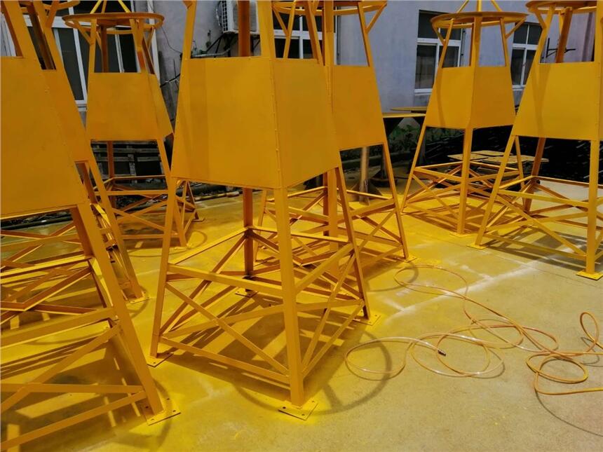施工示浮标界标限定了渔业的边界的范围,也为外来船只提供了导航。避免其他船只误闯,造成不必要的损失。同时也为大型水库、天然浴场、游泳区提供示作用。保障了人们的安全。示浮标制造材料为食品级度聚,内部填充泡沫。浮标主要是柱形浮标,其结构市有顶标、支架、标体、电池、尾管、平衡铁组成,其上可装有太阳能灯、体、太阳能电池板灯。其下系有锚碇设备。适合于海上湖泊的施工。