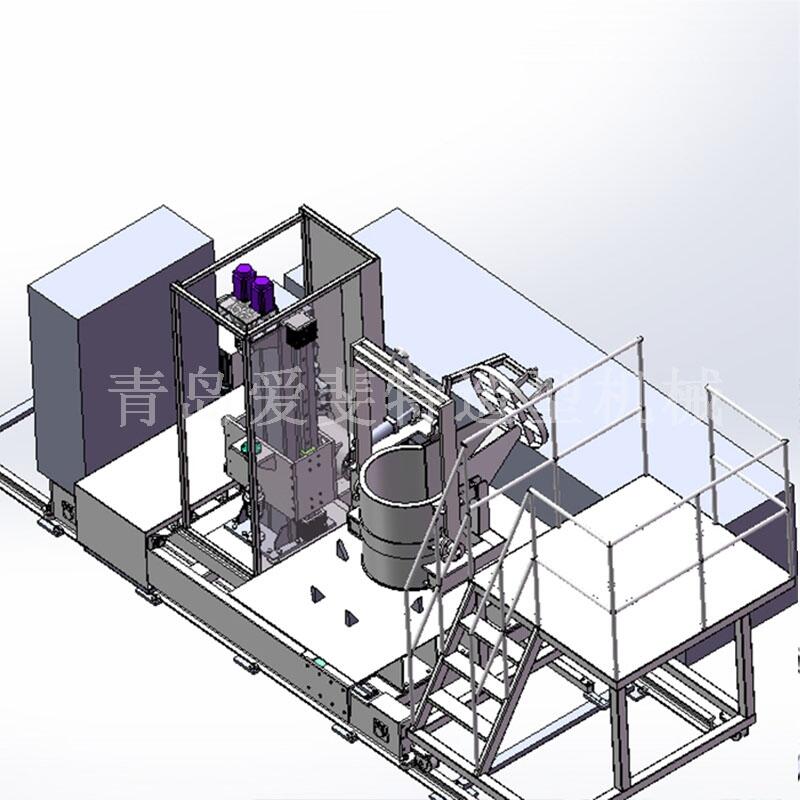 浇注机安置在轨道系统上,通过齿条传动能够达到沿浇注线的任何位置,因此在生产中断情况下,可以倒空浇包。