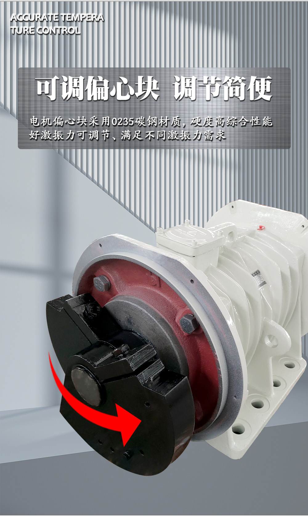 XBL系列立式振动电机是动力源与振动源结合为一体的激振源。振动电机是在转子轴两端各安装一组可调偏心块,利用轴及偏心块高速旋转产生的离心力得到激振力。XBL系列振动电机由电机本身运行产生易于调整的水平、垂直、倾斜等方向多元激振力,形成物料的快速平面分散、中心聚集、平面旋转、三维旋转等多种运动方式,用于控制排料速度、处理精度等机械性能指标,以其独特的结构特点适应于不同的机械对振动源的要求。