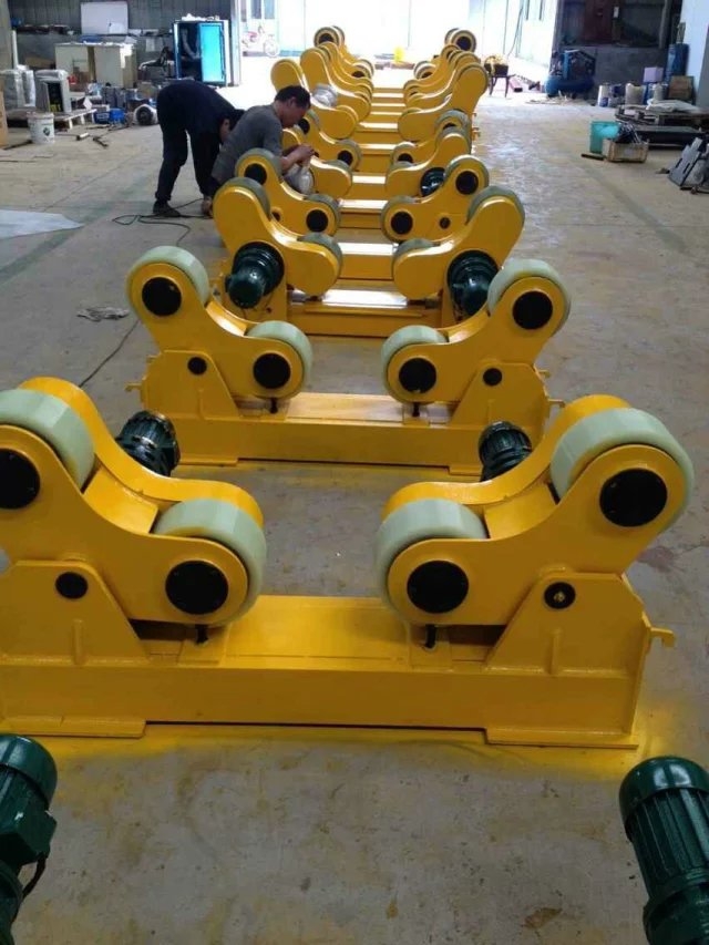 江苏5吨10吨焊接滚轮架厂家出售,自调滚轮架的组成主要由:机座、主动滚轮组、从动滚轮组、驱动机构、控制系统组成;滚轮架是利用滚轮与工件之间的摩擦力带动工件旋转的变位设备,可根据工件直径大小不同的需求,移动滚轮组,调节滚轮中心距满足工件尺寸变化。