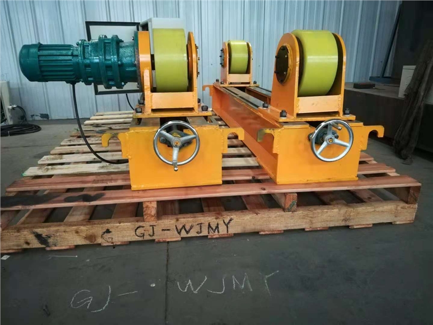 可调丝杆焊接滚轮架5吨10吨卖多少钱,5吨/10吨/20吨可调式焊接滚轮架可通过预留螺孔或丝杠调节滚轮中心距,以适应工件直径变化,驱动采用摆线针轮减速机方式或蜗轮蜗杆减速机方式,双电机驱动。根据用户的需求,滚轮分胶轮、钢轮、钢胶组合轮三种形式 ;可与其他设备联动控制。该滚轮架主要用于圆柱形筒体的焊接、抛光、衬胶及装配等,还可与其他工装配合进行锥体、分段不等径回转体的装配和焊接。本产品广泛应用于风电、压力容器、石化、管道、钢结构、锅炉、造船、堆焊修复等行业。本厂还可根据用户需要设计、定制各种类型的滚轮架。