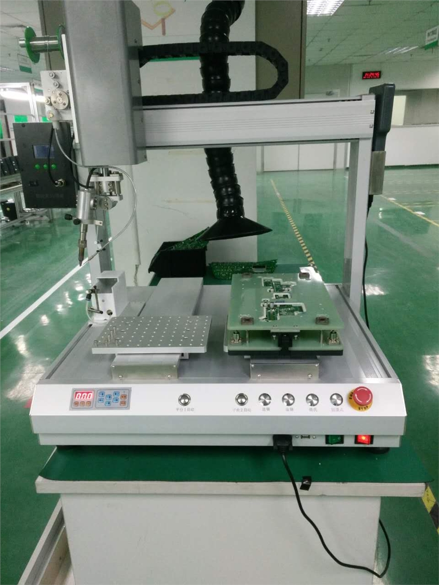 自动焊锡机主要应用于电子制造业,主要针对回流焊、波峰焊等生产设备很难达到的工艺制程以及焊锡加工,特别适用于混装电路板、热敏感元器件、SMT后端工序中敏感器件的焊接,广泛应用于PCB焊线、充电器插头焊接、连接器焊接、光伏行业、汽车行业、照明电器、数码产品等。DC端子加锡、LED灯带连接等领域。自动焊锡机器人代替人工焊接,提高工作效率,改善焊接质量。