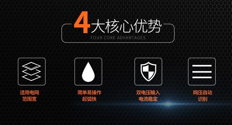 1、采用IGBT逆变技术,电流型控制,质量可靠,性能稳定