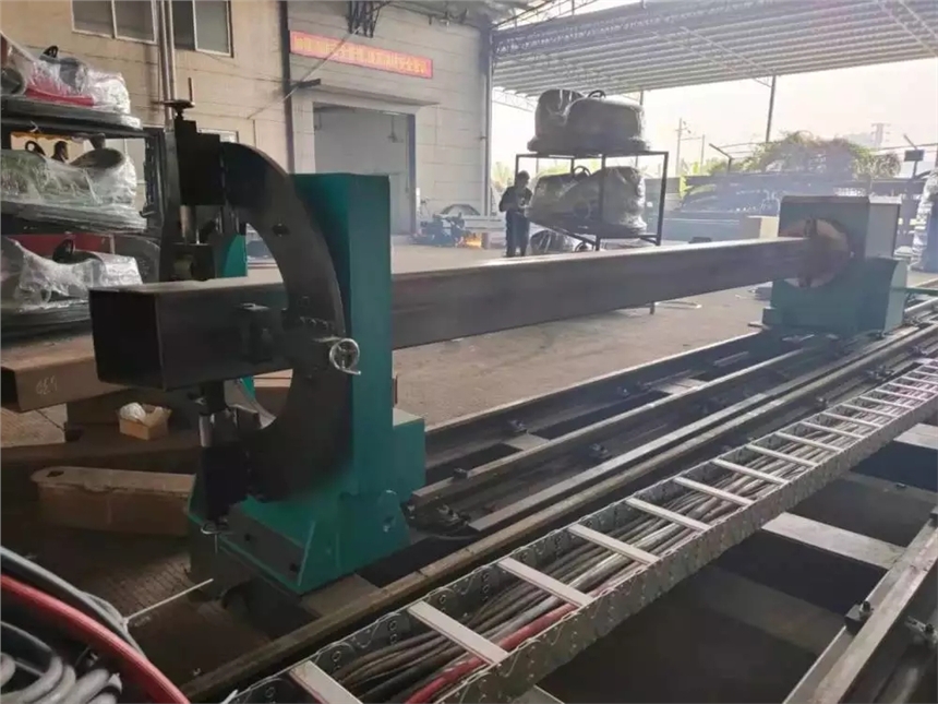 配备等离子和火焰两种切割方式,等离子可以切割坡口角度为±45°,火焰切割端部坡口角度为±60°,火焰开孔角度为±55°。机器有效的切长度为6m、9m和12m。