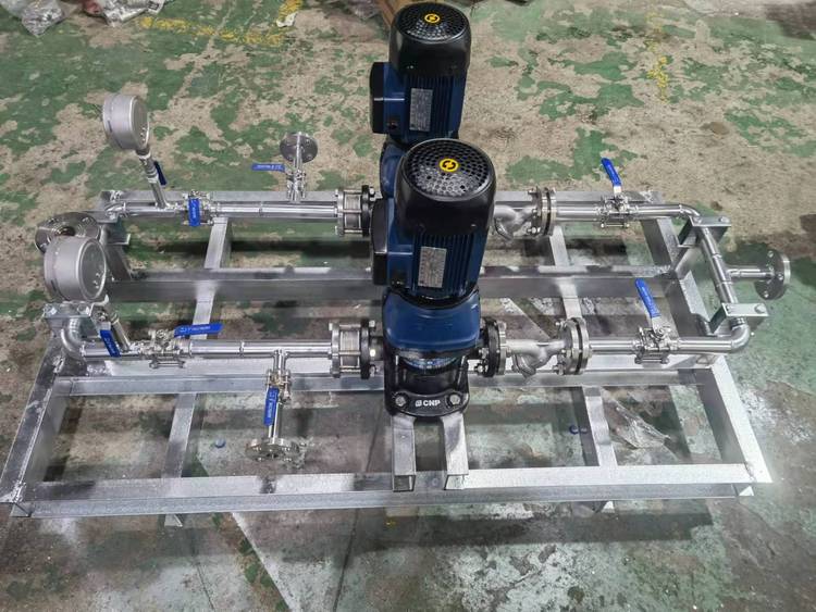四、输送模块 :配置一套氨水输送系统,氨水泵设置一备一用,采用 200的流量设计,氨水输送设置过滤系统防止堵塞,采用碳钢框架底座方便 安置,同时设置电控箱。