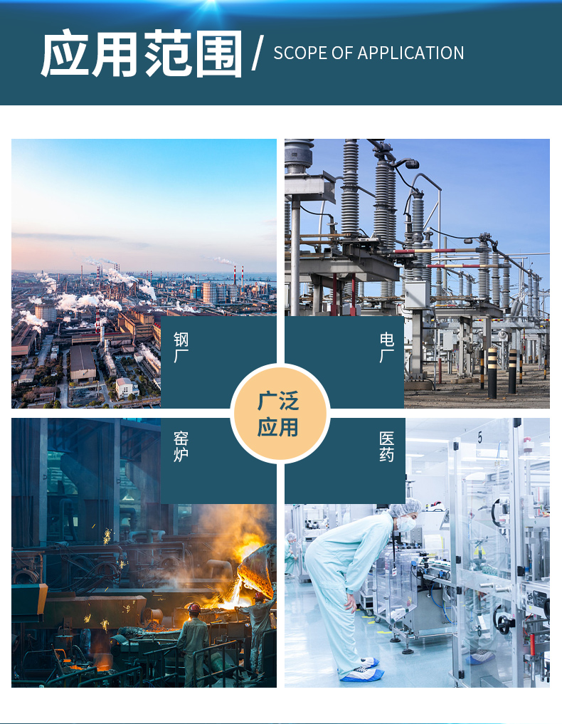应用范围 | 钢厂、电厂、窑炉、锅炉烟气脱硫 | ||
