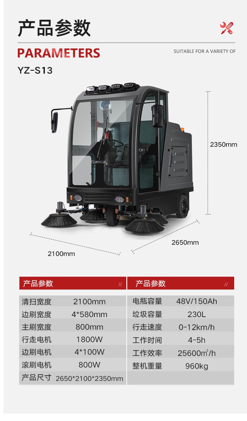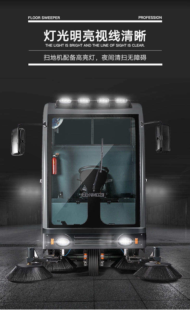 驾驶式垃圾清扫车价格 扬子YZ-S13使用防撞玻璃,提升了安全性能,冷钢垃圾箱设计倾倒方便,不仅实现了电动振尘,同时还设置了液压减震,让操作更加舒适。