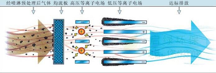 等离子废气净化设备工作原理是:在外加电场的作用下,介质放电产生的大量携能电子轰击污染物分子,使其电离、解离和激发,然后便引发了一系列复杂的物理、化学反应,使复杂大分子污染物转变为简单小分子安全物质,或使有毒有害物质转变成无毒无害或低毒低害的物质,从而使污染物得以降解去除。因其电离后产生的电子平均能量在10ev ,适当控制反应条件可以实现一般情况下难以实现或速度很慢的化学反应变得十分快速。