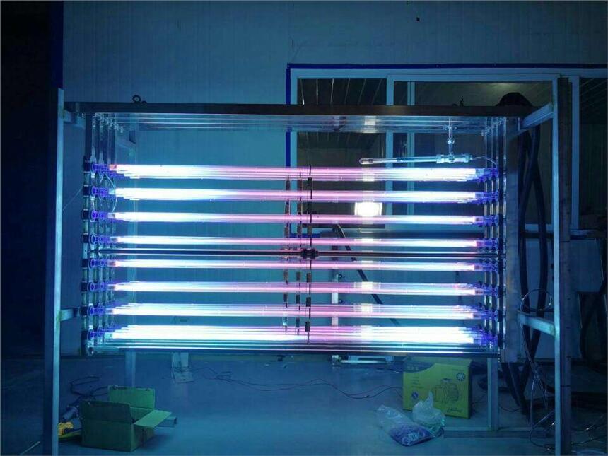 明渠式紫外线消毒设备包括:紫外灯模块组,模块支架,配电中心,系统控制中心,水位探测及控制输出等组成。