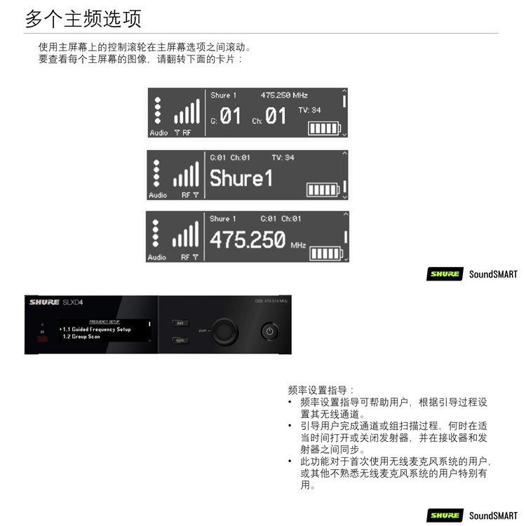 2节AA电池壳持续使用长达8小时,也可选配舒尔SB903可充电锂电池