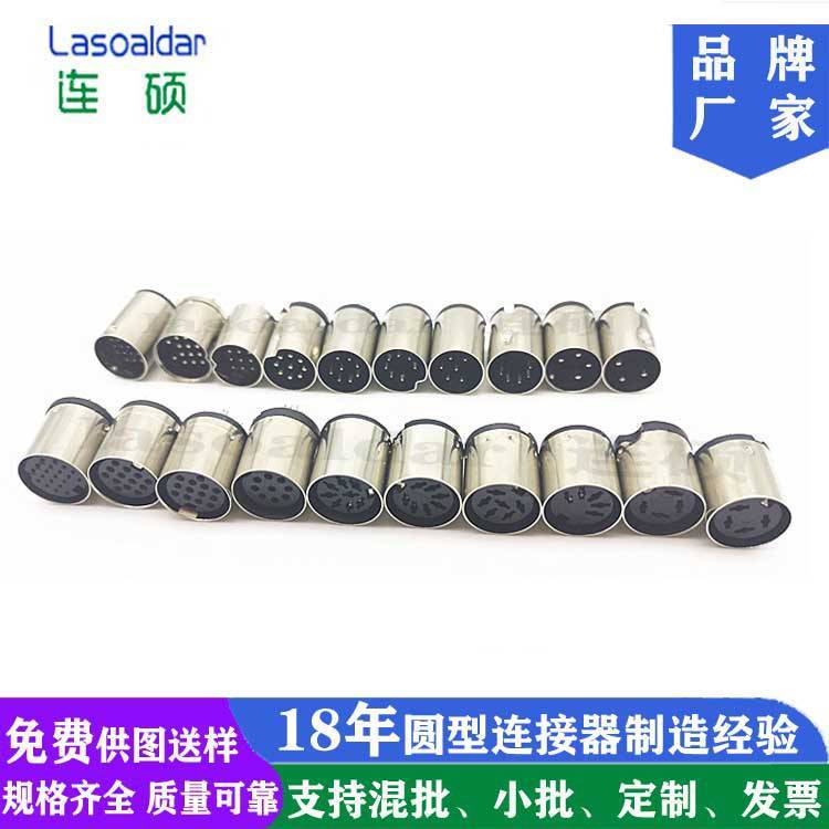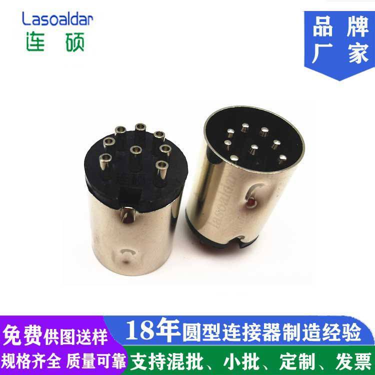 LASOALDAR连硕品牌厂家生产焊线成型式262°度大DIN8PIN公插头八芯实心车针接插件插拔力紧