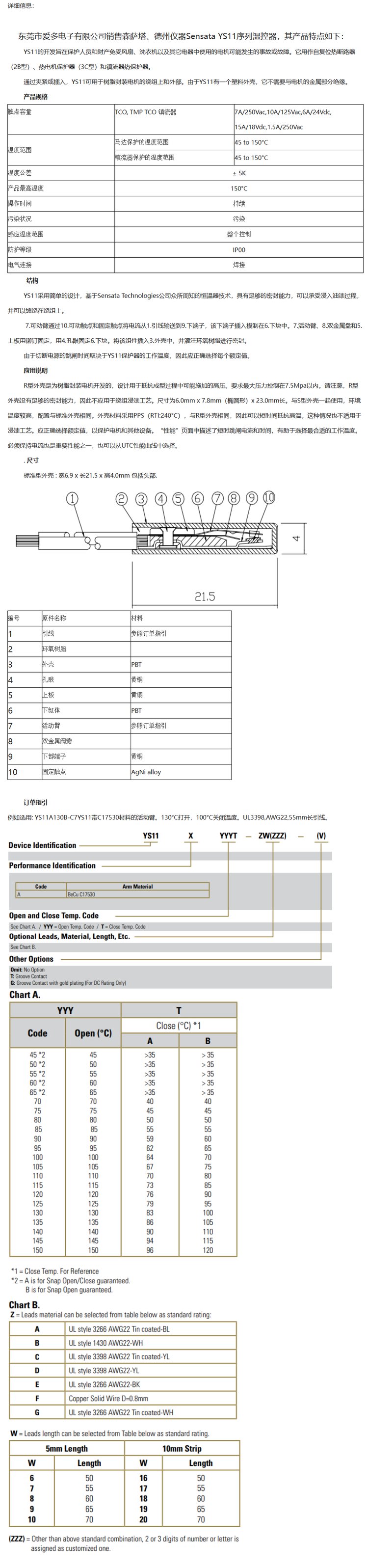 森萨塔SENSATA KLIXON YS11系列温控器/热保护器质量保证 品牌 | 森萨塔 | ||