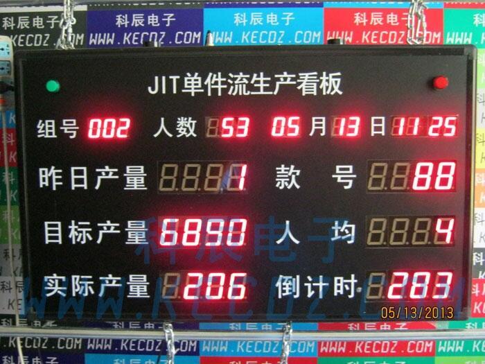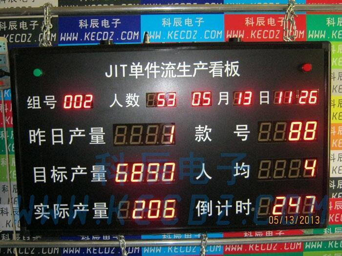 10.其他功能:看板内置时段管理功能,可设置任意时刻暂停或启动,可设置自动清0或赋值(如每日生产8点前实际产量数自动清0,早中晚班计划数量自动切换,生产休息时间自动开始暂停等) 可以设置30个时段;看板上所有数据(除点阵上的文字)均可由现场遥控器修改。
