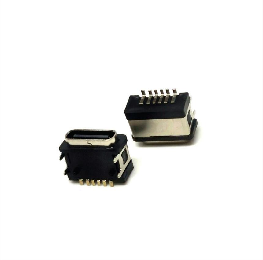 TYPE-C 6PIN板上四脚插板dip 防水母座 防水等级IPX7级