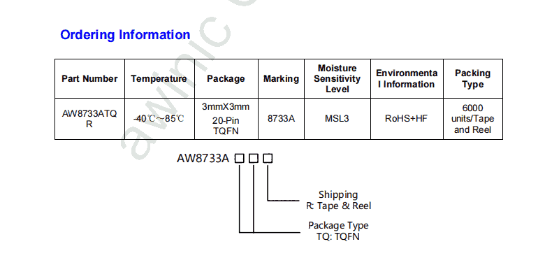 AW8733ATQR 超强 TDD 抑制、超大音量、K 类音响功率放大器