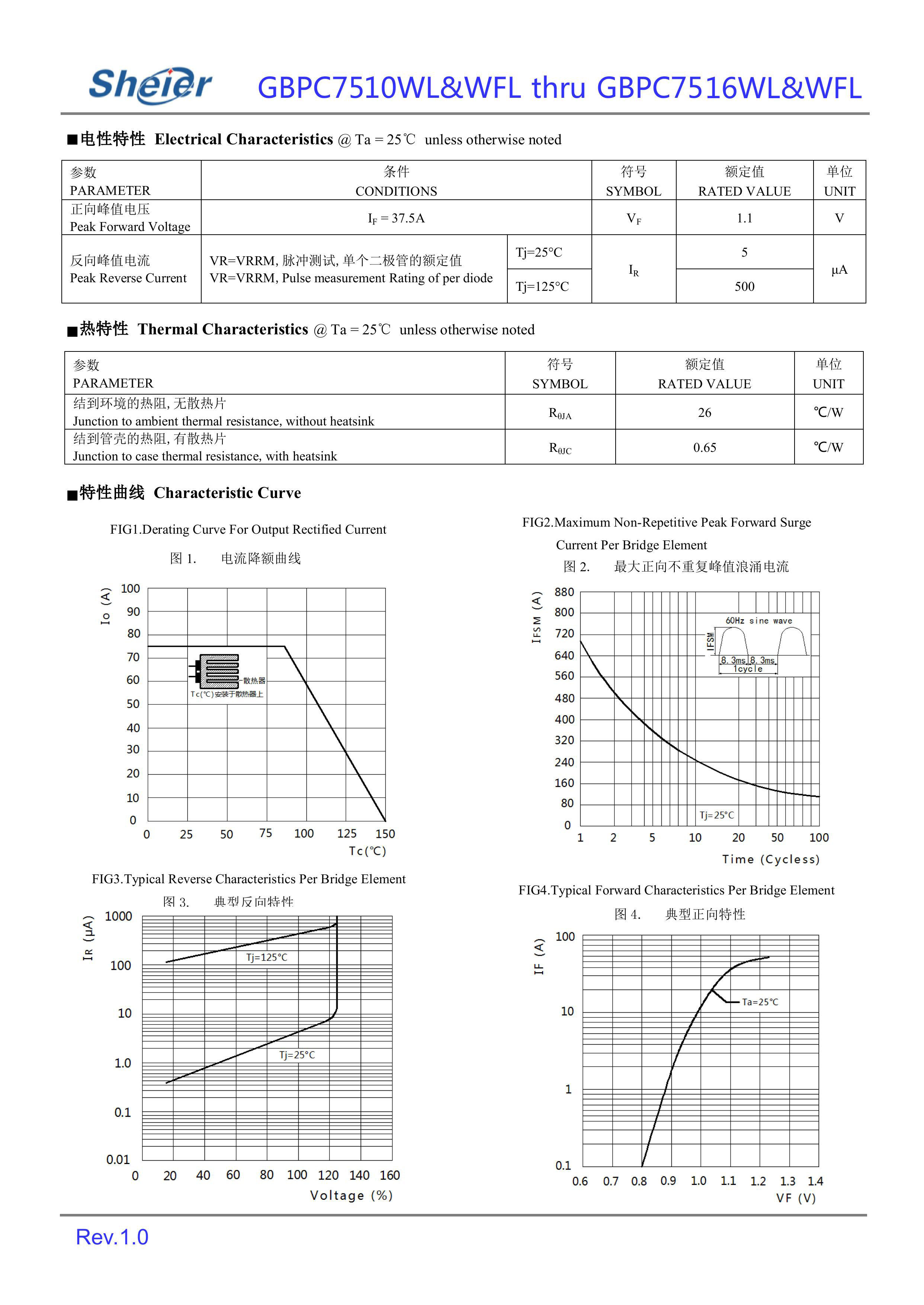 sheier/乐山希尔 GBPC7516WL/GBPC7512WL/GBPC7510WL 全新原厂原装高压大电流分立式功率整流器件整流桥,1600V~600V、75A、单排针脚式方形桥堆:GBPC7516WL/GBPC7512WL/GBPC7510WL。正向整流电流:75A;反向峰值电压:1600V~600V;;正向压降VF:1.2V;封装方式:ST-S针脚式;最小包装数量:100pcs/盒。