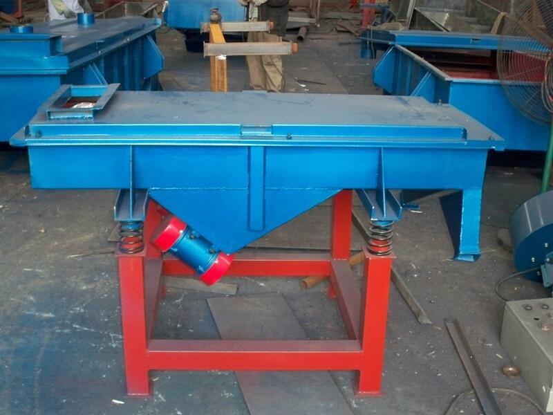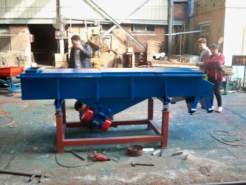 采用双振动电机驱动,当两台振动电机做同步、反缶旋转时,其偏心块所产生的激振力在平行于电机轴线的方向相互抵消,在垂直于电机轴的方向叠为一合力,因此筛机的运动轨迹为一直线。其两电机轴相对筛面有一倾角,在激振力和物料自重力的合力作用下,物料在筛面上被抛起跳跃式向前作直线运动,从而达到对物料进行筛选和分级的目的。可用于流水线中实现自动化作业。具有能耗低、效率高、结构简单、易维修、全封闭结构无粉尘溢散的特点。最高筛分目数325目,可筛分出7种不同粒度的物料。