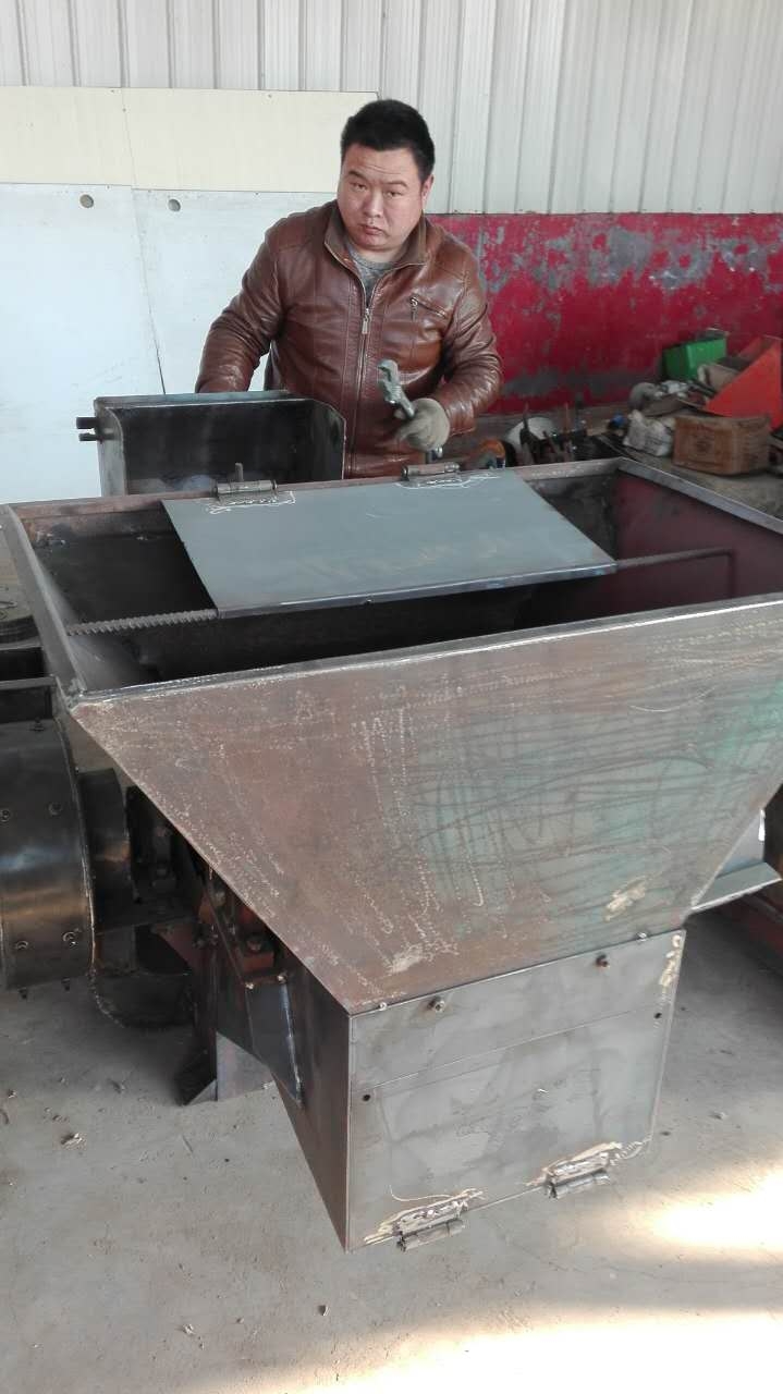 在粉碎秸蔓类时无须预加工也不需要机手在进料口用手喂料,只须用棍杈挑入破碎仓即可,使用时在距破碎仓一米处直接将花生秧,地瓜秧,麦秸,整捆玉米秸秆等投入破碎仓,通过秸杆的下沉力自动进料,经粗加工后自动进入粉碎室进行二次粉碎。草粉由风机提入沙克龙集粉器后装入袋子。克服了以往粉碎机喂料困难,危险,效率低下,草粉装袋费