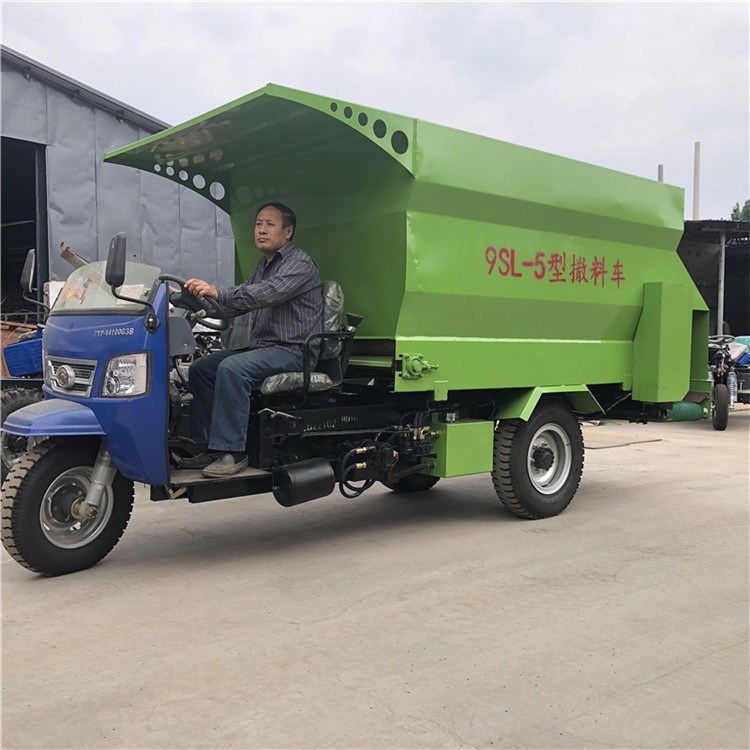 饲料撒料车的吊具采用三轮车动力和低能耗