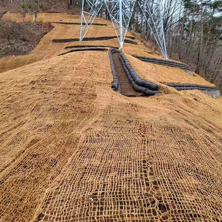 椰网,广西椰网,南宁椰网又称椰纤维网(CF网),用100%的椰子纤维做成的网状结构。椰子纤维是硬纤维和床垫纤维的混合体,含0.25%半纤维素酶、45%木质素、43%纤维素和4%胶质,有较低的伸长率和高抗拉强度;CF网有较高的耐腐蚀能力,一般生物降解时间约为3-5年。CF网在边坡上的使用,增加了坡面粗糙度,降低流速,由于是网格状,能将坡面径流变为漫流,减少坡面冲刷;同时椰子纤维能吸收一部分水分,能截留部分雨水,增加坡面保水能力。CF网是一种新型环保材料,在灌为主、草为辅种植时,表层加设具有较高抗冲刷能力的CF网,以保障前期灌木生长时,基材和种子不流失。