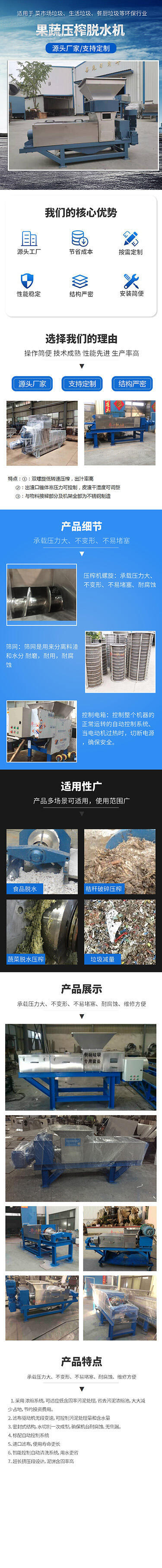 厨余废弃物品螺旋压榨机果蔬菜叶减量挤干设备