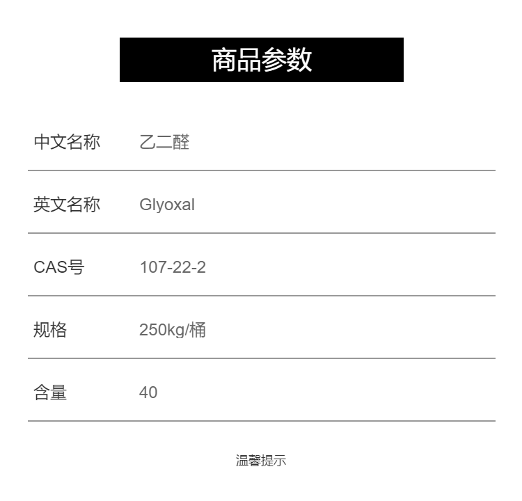 乙二醛 40水溶液 现货 250kg/桶 无色或淡黄色棱状结晶 液体 CAS号107-22-2