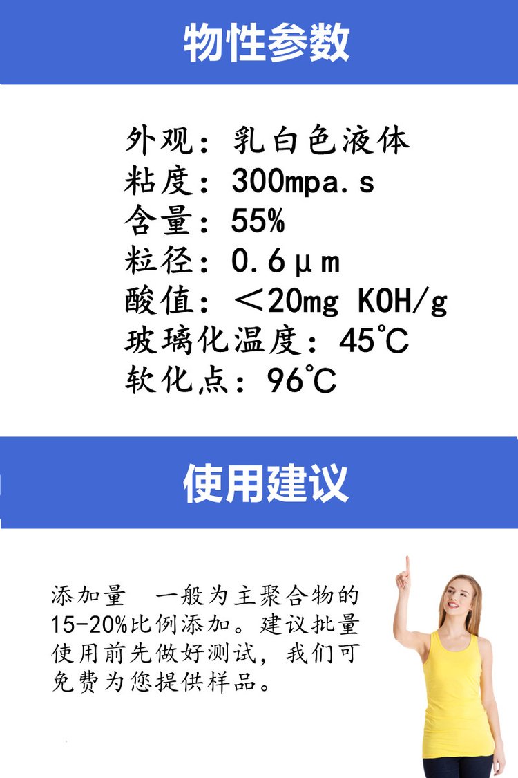 用途范围 | 水性压敏胶、水性乳液 | ||