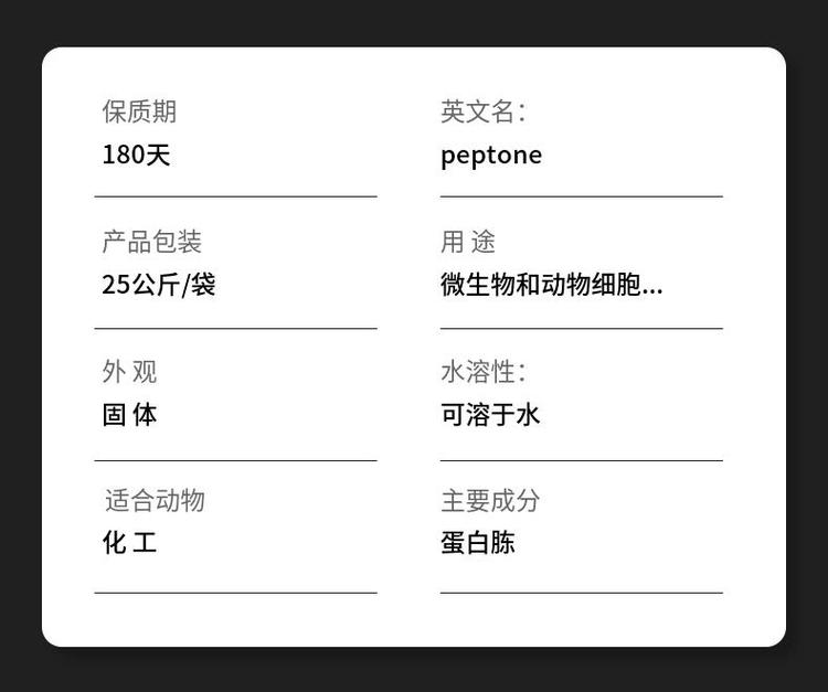 化工 180天 可溶于水 英文名:peptone 固体 25公斤/袋 蛋白胨 品牌 | 其他 | ||