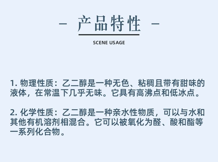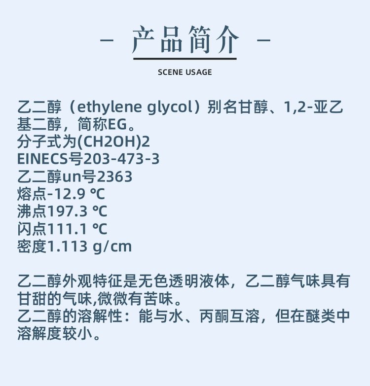 乙二醇用途 | 制冷剂,清洗剂,增稠剂 | ||