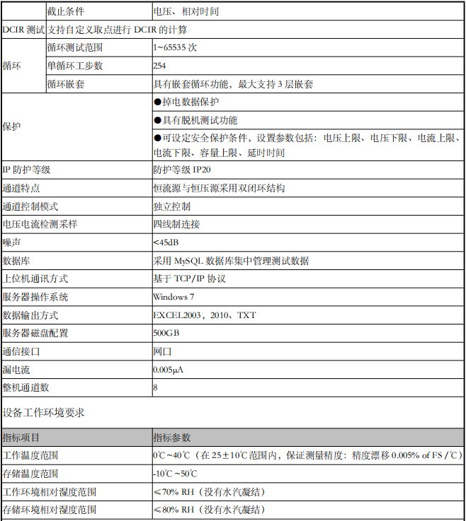 容量测试项目 | 充电容量,放电容量,容量衰减 | ||