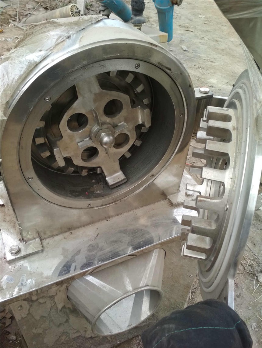 工作原理:物料由进料斗送粉碎室,经刀刃和刀座的冲击,卧式旋转刀和卧式固定刀同时剪切粉碎,由于受到旋转离心力的作用,物料自动流向出口处。