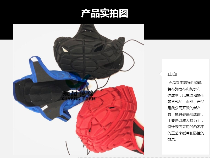 生产工艺:海绵成型的话肯定是采用的热压完成的,那么什么是热压加工,热压就是直接加温于模具,然后把海绵放在模具里面成型出来的产品,一般温度达到了100度以上了,海绵表面也可以贴绒布和皮料等。同时我公司还有一种冷压的工艺,这种工艺是通过烤箱把材料加热烤熟后放在模具里面成型出来的产品。