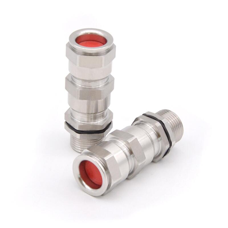 產品說明 :本公司的不锈钢电缆接头采用304不锈钢材质精制而成,具有独特的防爆功能,特殊夹紧爪与夹紧圈之设计,夹紧电缆范围大,抗拉力特强,可防水、防尘、抗盐、耐弱酸、酒精、油、油脂及一般溶剂。防爆作用广泛被使用在防爆电器,中石化,化工等行业,不锈钢电缆接头防爆认证齐全。